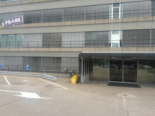 U betreedt het terrein via de hoofdingang, met de dubbele slagboom, aan de achterkant van het gebouw (viaductzijde). Vervolgens rijdt u het parkeerdek op. Vanaf het parkeerdek kunt u via de hoofdingang naar binnen.
