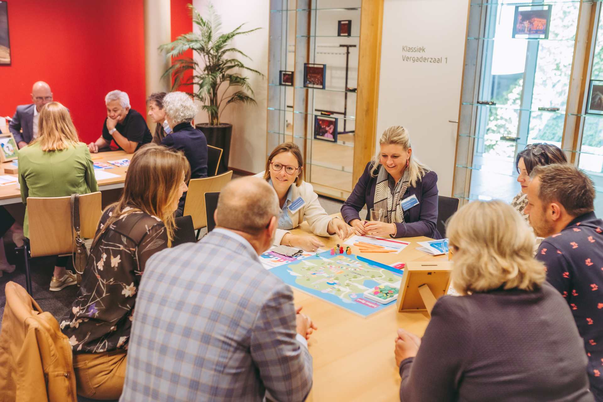 Na het verhaal van Peter Boelhouwer gingen we aan verschillende tafels met elkaar in gesprek over de dilemma’s die we zien binnen onze opgaven. Dat deden we in de vorm van een spel met Lef(ier)! Een verfrissende manier om serieuze thema’s te bespreken. Het spel zorgde voor veel verbondenheid, begrip én plezier!