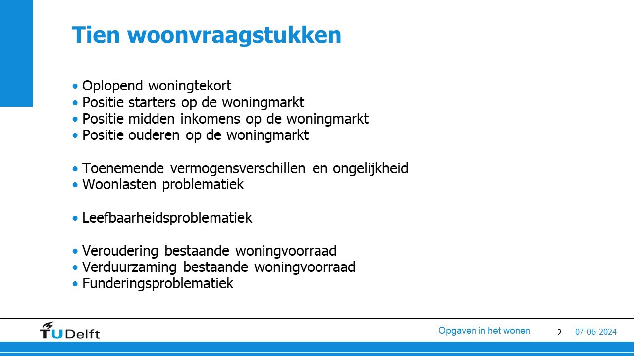 De woningmarkt kent momenteel veel uitdagingen: oplopend woningtekort, verduurzaming, woonlasten- en leefbaarheidsproblematiek. Deze uitdagingen raken ons allemaal. We vroegen u voor de bijeenkomst welke ontwikkelingen op de woningmarkt u bezig en wel eens wakker houden. Deze input hebben we geïntegreerd in de verschillende programmaonderdelen van de ochtend.