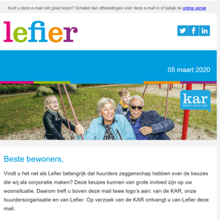 Vanwege onderhoud aan onze website, is 'Mijn Lefier' even offline op woensdagavond 5 februari, van 17.00 - 21.00 uur. Onze excuses voor het ongemak.