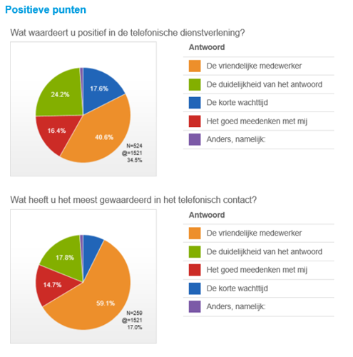 Onze dienstverlening wordt op vier onderdelen gemeten: vriendelijkheid, luistervaardigheid, meedenken en respect. Op al deze onderdelen scoren we boven de 8. Ook worden ruim 84% van de telefonische klantvragen direct beantwoord. We merken dat we de klant steeds vaker direct een antwoord op de vraag kunnen geven, zonder te moeten doorverbinden.
