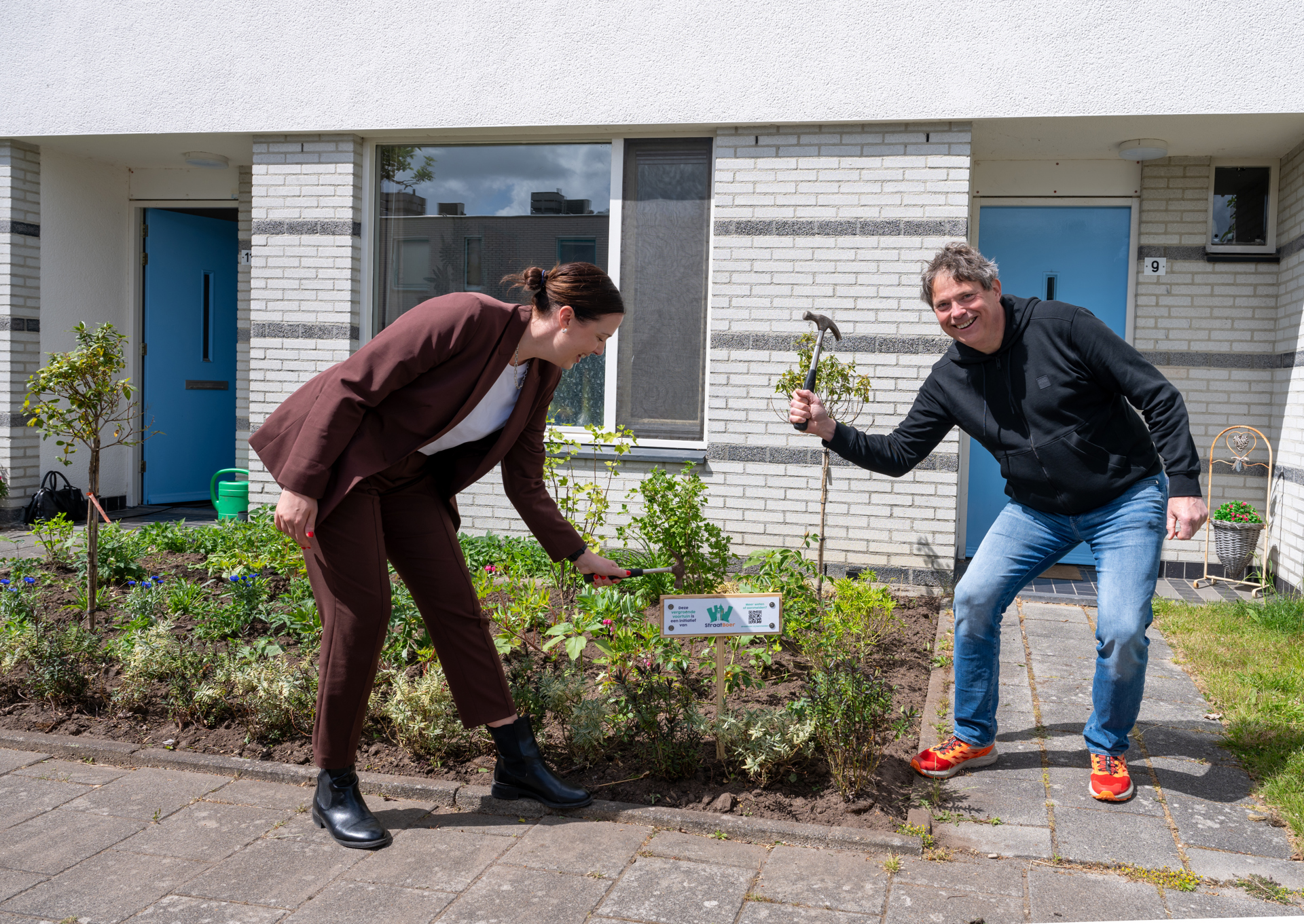 In de wijk Hoornse Meer hielp wethouder Mirjam Wijnja mee met het planten van groen in de voortuin van bewoner Cees Frankruijter. Ze deden dit samen met Stichting Straatboer. De wethouder benadrukte hoe belangrijk het is om tuinen groener te maken: “Groen helpt tegen hitte en wateroverlast, het maakt de buurt mooier, én het draagt bij aan het sociale aspect.”