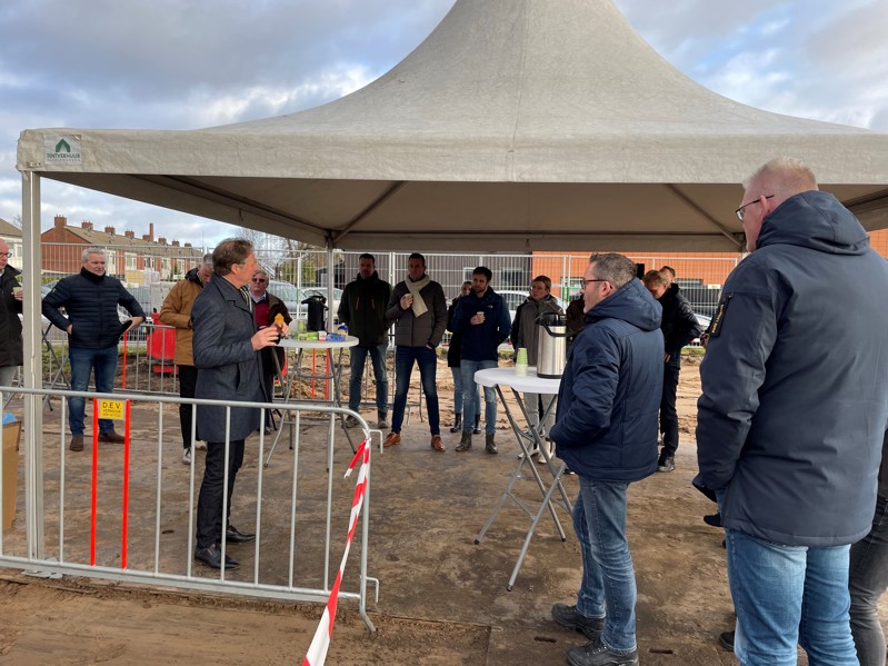 Pieter Witzenburg, directeur vastgoed van Lefier, opende het feestelijke startmoment. Na het startsein werd onder toeziend oog van de aanwezigen de eerste schop in de grond gezet.