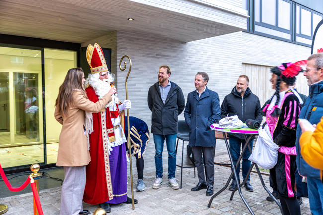 Vernieuwde Van Heemskerckflat feestelijk geopend: sleutel gebracht door Sint en Piet